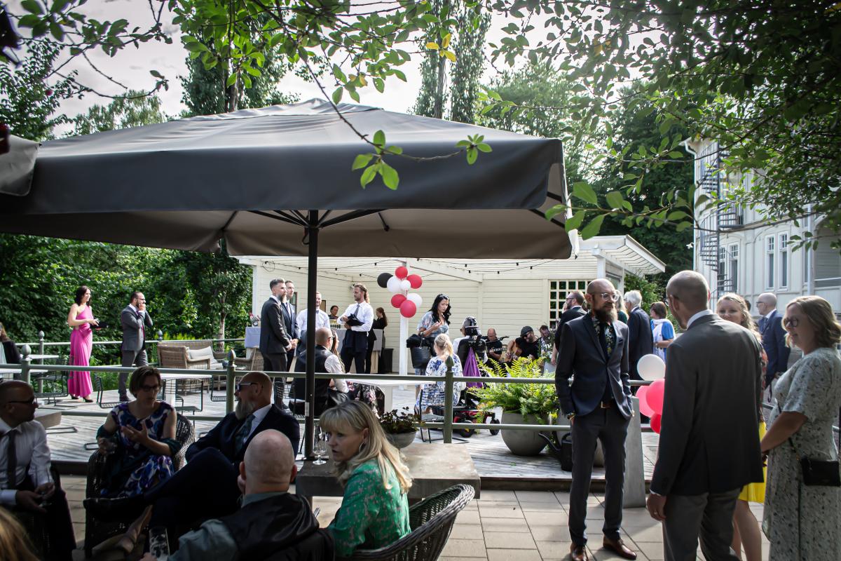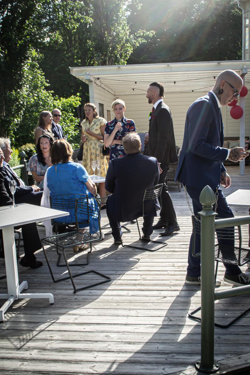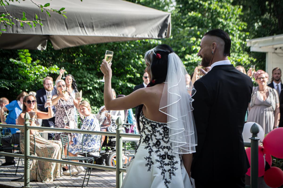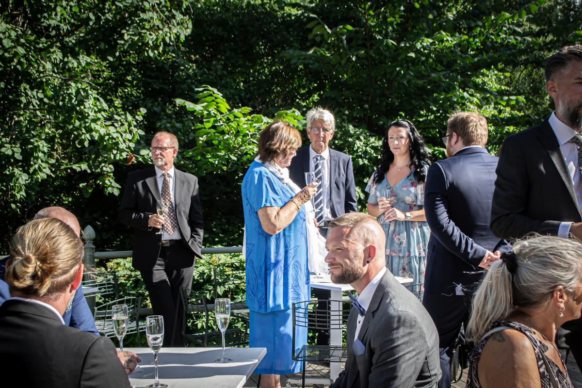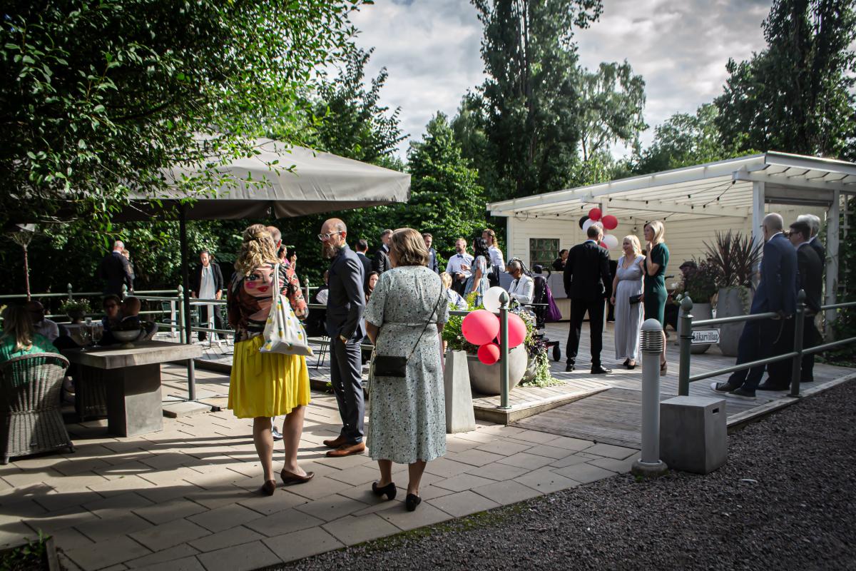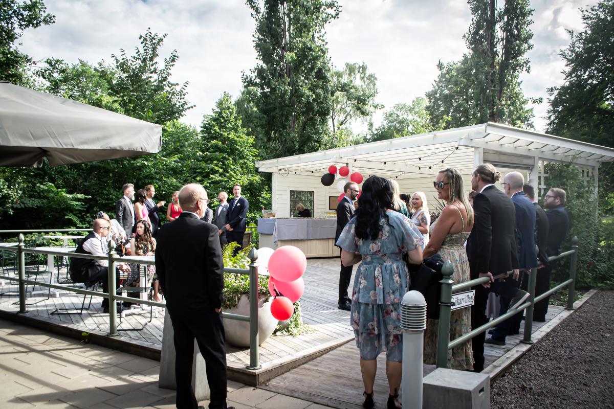 Festen startar 17:00 med mingel, snittar och mouserande vin. Det går bra att komma direkt efter kyrkan. Under kvällen kommer det serveras trerätters middag och då ingår dryck till maten. Önskar man förtära dryck utöver det som ingår vid maten kan man det köpa på kurorten. Dom har bar med fulla rättigheter fram till kl. 02:00. Bröllopstårta med kaffe blir det självklart. Men för att vi ska orka dansa hela natten kommer det också serveras pizza slice lite senare på kvällen.