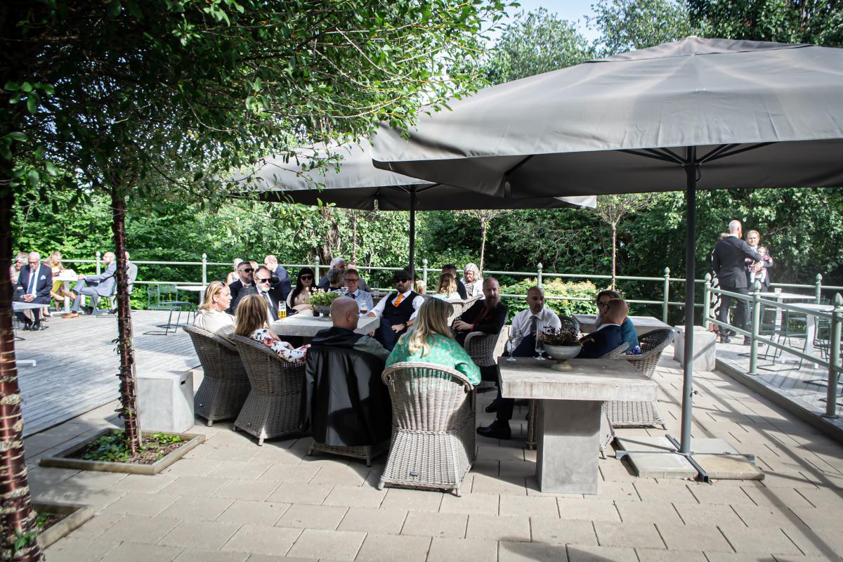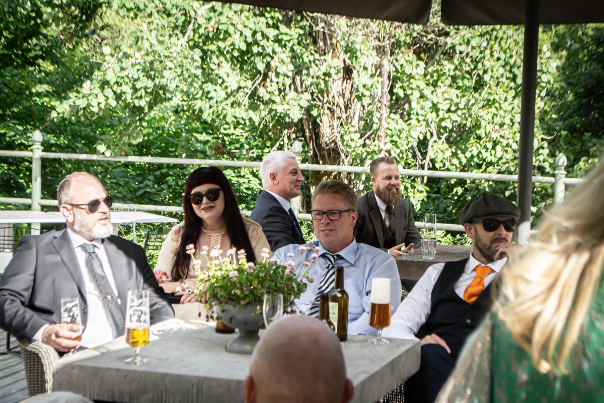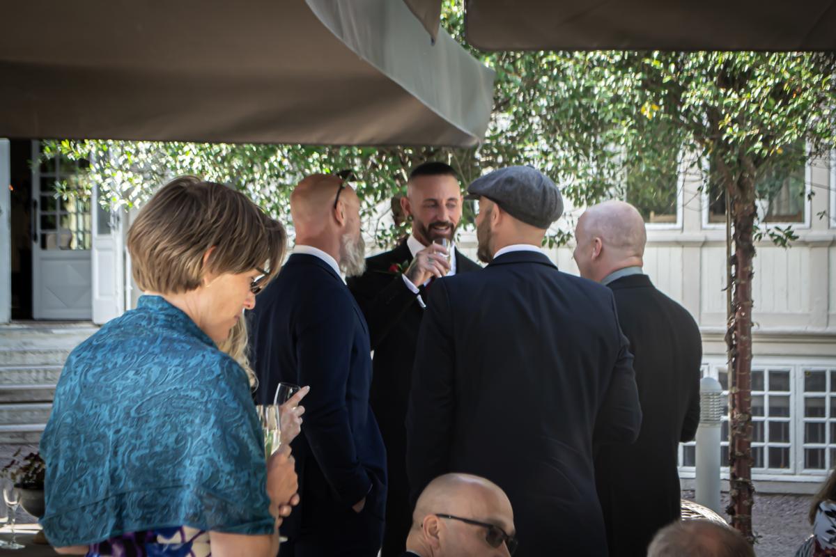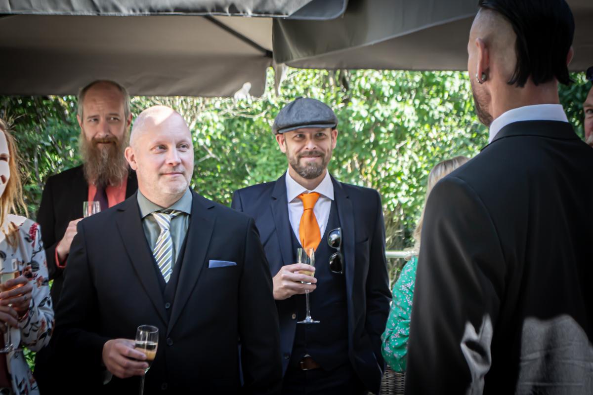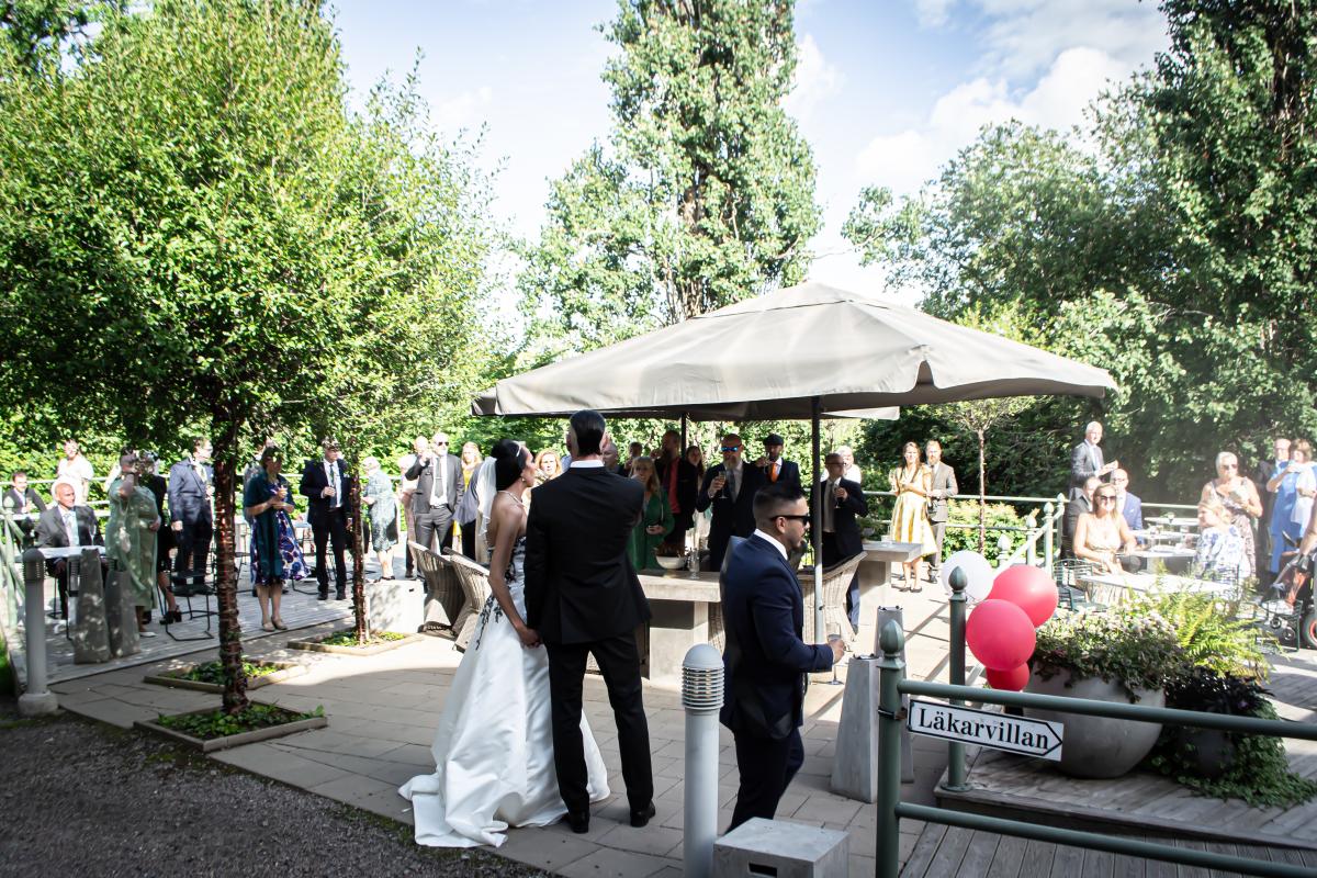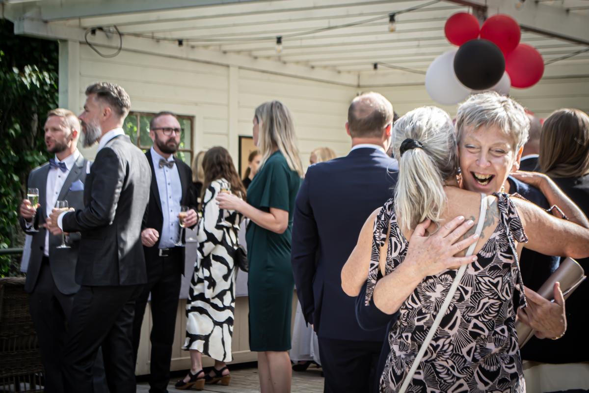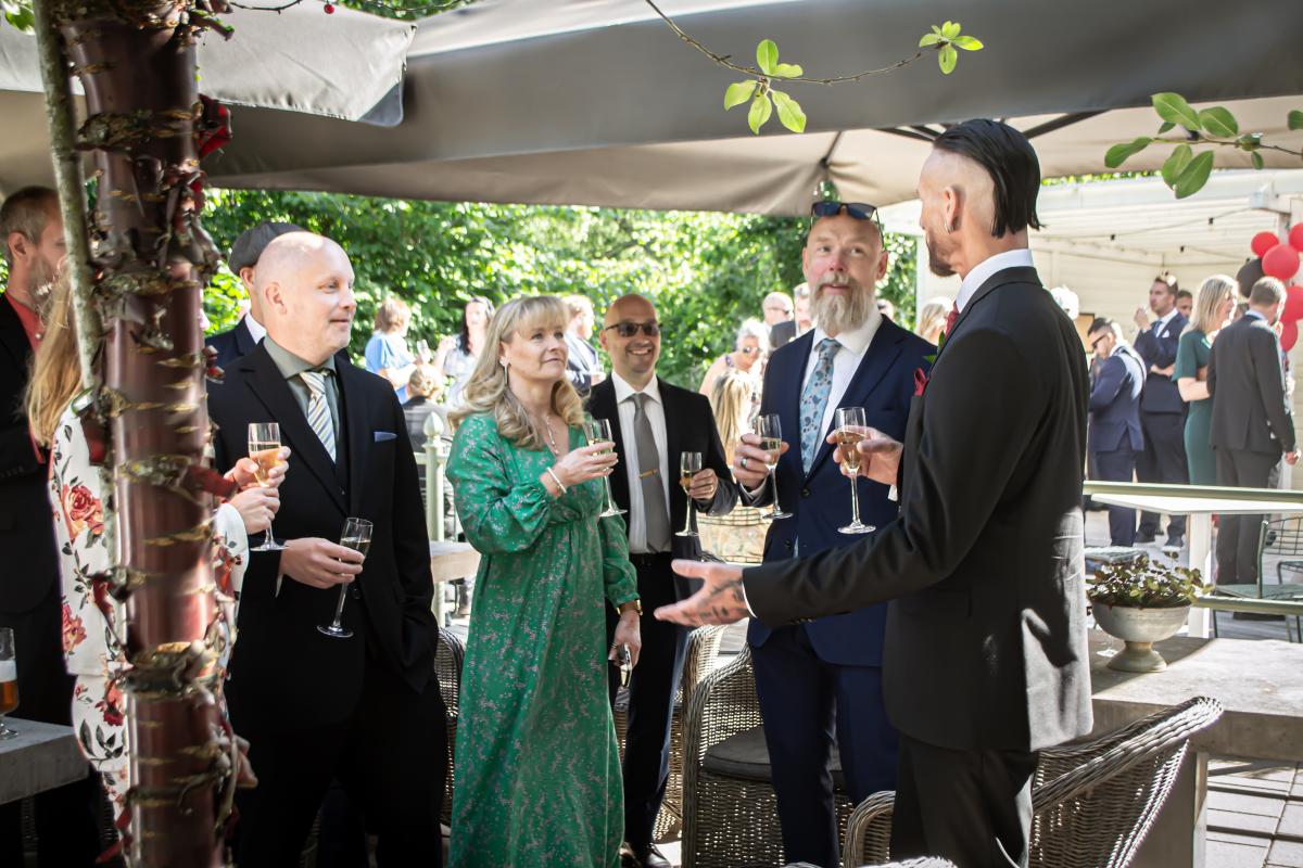Festen startar 17:00 med mingel, snittar och mouserande vin. Det går bra att komma direkt efter kyrkan. Under kvällen kommer det serveras trerätters middag och då ingår dryck till maten. Önskar man förtära dryck utöver det som ingår vid maten kan man det köpa på kurorten. Dom har bar med fulla rättigheter fram till kl. 02:00. Bröllopstårta med kaffe blir det självklart. Men för att vi ska orka dansa hela natten kommer det också serveras pizza slice lite senare på kvällen.