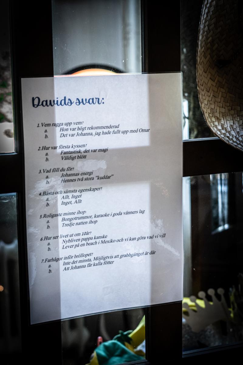 Jag hade min framtid utstakad med resor, surfing och bara kunna bry mig om mig själv.... Tills dagen då du fulkomligt stormade in i mitt liv. Tänk så fel man kan ha om vad man egentligen vill och vad man längtar efter.... Du vände allt upp och ner och förändrade hela mitt liv. Johanna, du har kommit att bli min bästa vän, den jag ser upp till och du är min största förebild. Du är den jag vill dela mitt innersta med. Du får mig att växa som människa, du får mig att se det som är viktigt i livet. Men viktigast av allt är att du är mitt livs kärlek och att du gör mig lyckligare än jag trodde var möjligt. Med dig har jag allt, utan dig är jag inget.